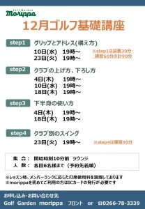 それでは、ゴルフ基礎講座12月日程のご案内です🎵